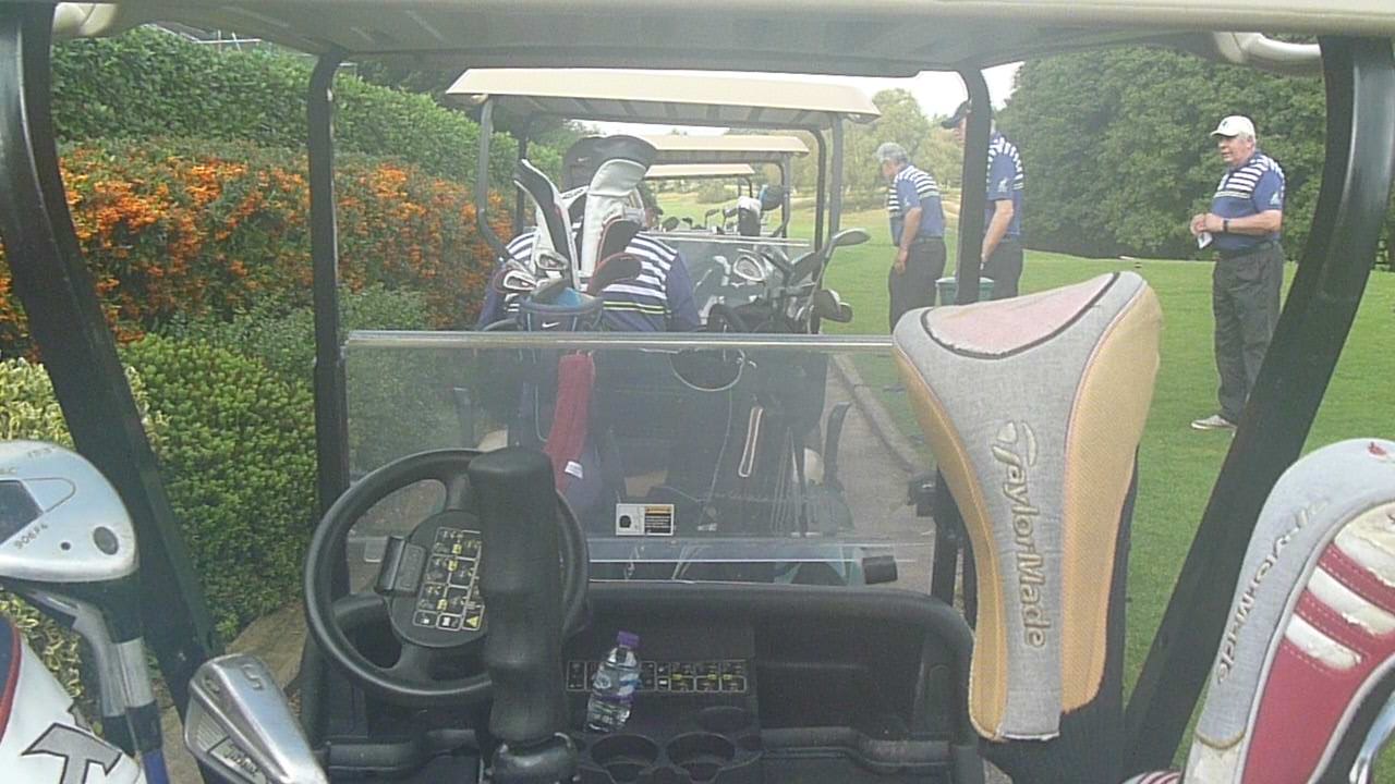 All set for round 2 and then Bazza finds trouble and faces a difficult 2nd shot 5 yards from the tee!