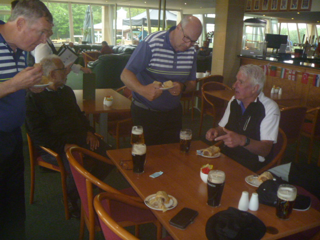 stopped play after nine for a half time snack. Pete and Casper go top of the