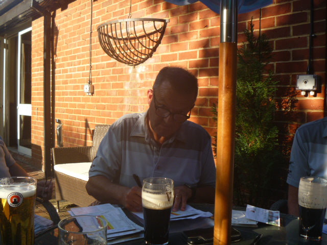 Pete checks the cards and corrects a couple of errors. Bazza and Oj are top