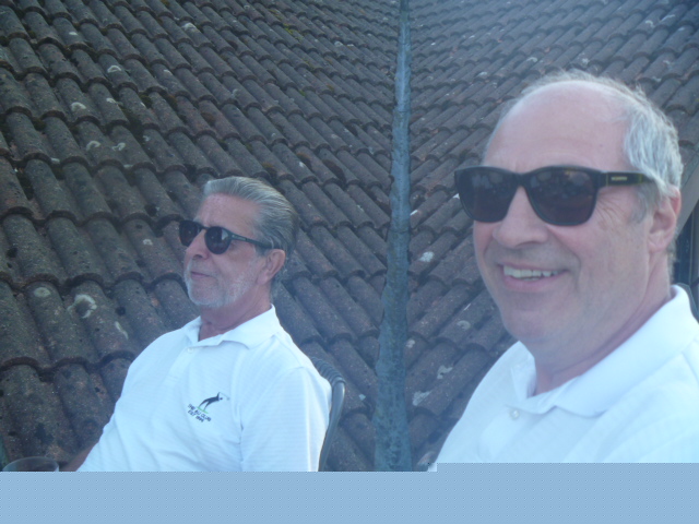 Usual breakfast at Frankie & Benny's then some serious golf prep before Mick got us underway