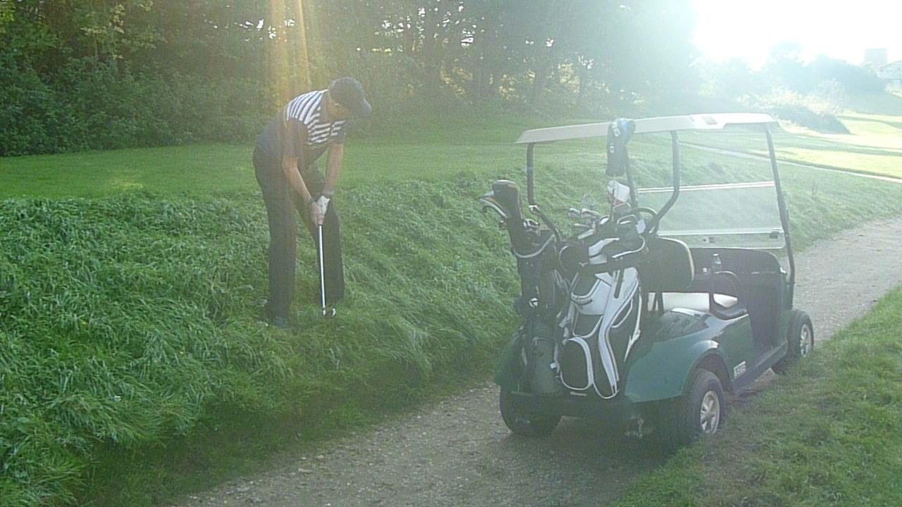 All set for round 2 and then Bazza finds trouble and faces a difficult 2nd shot 5 yards from the tee!